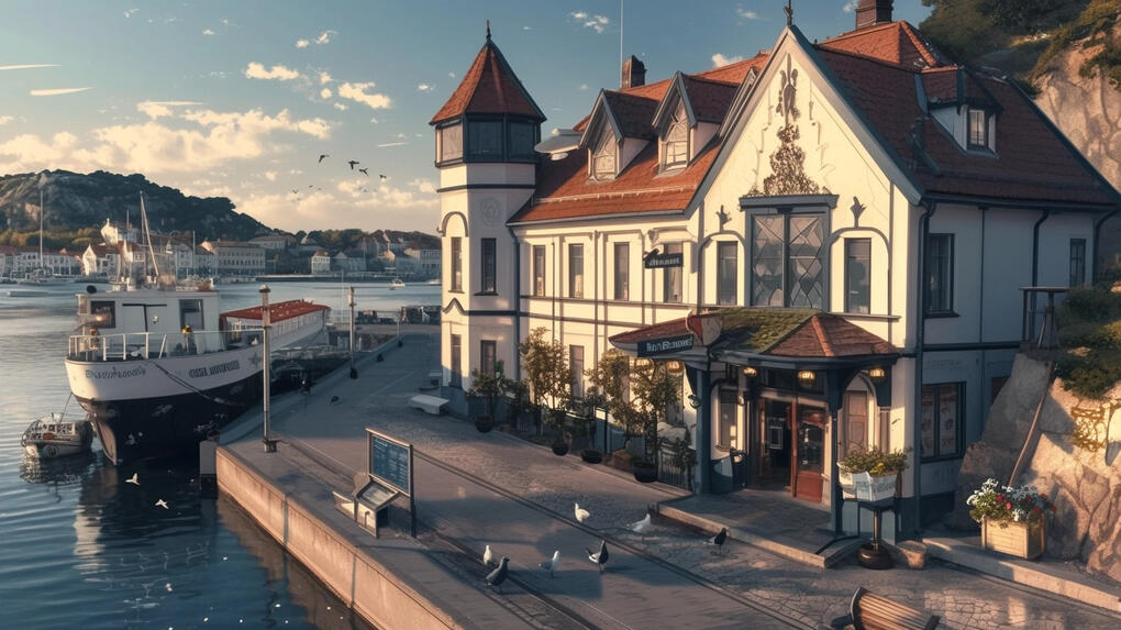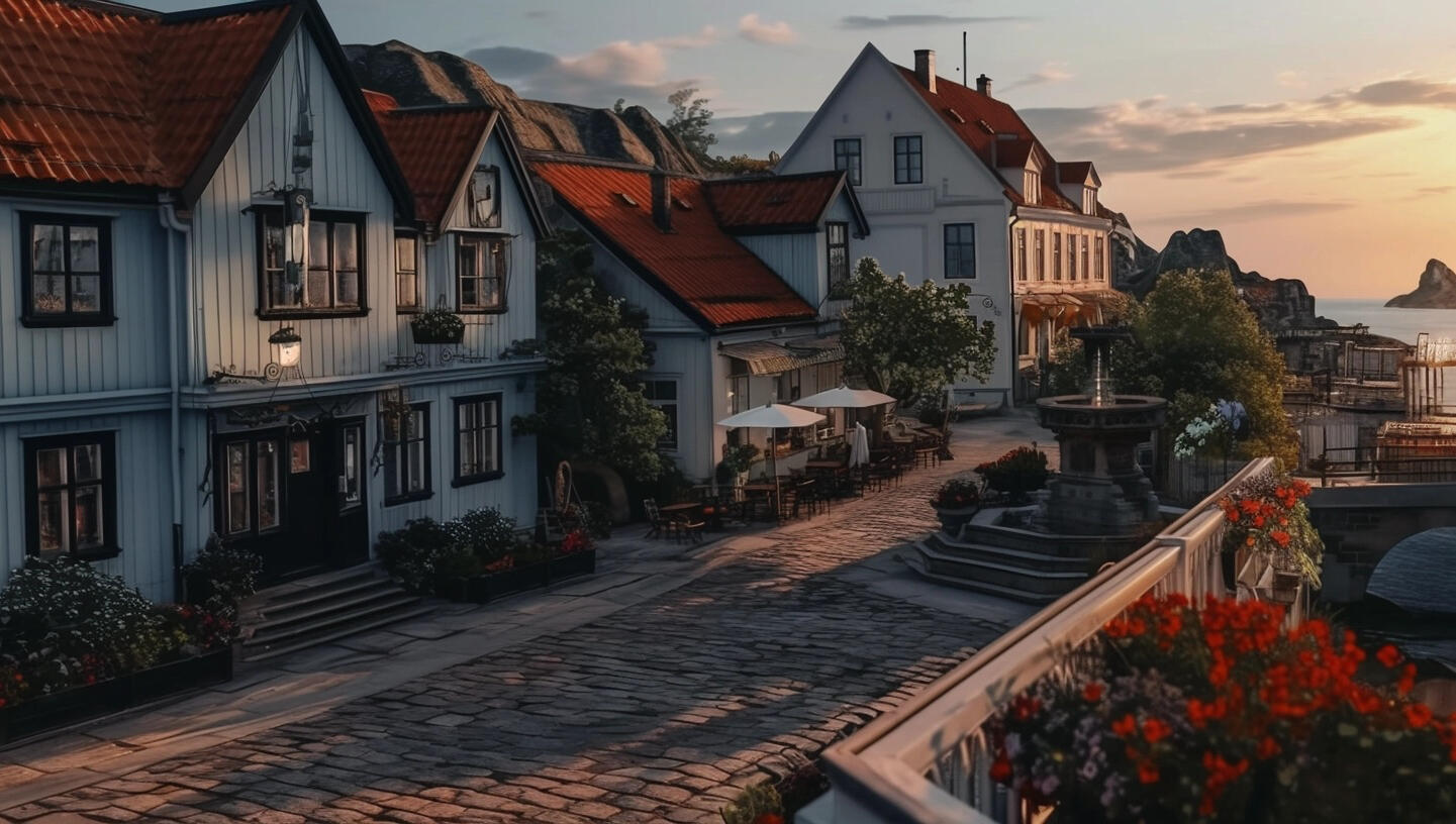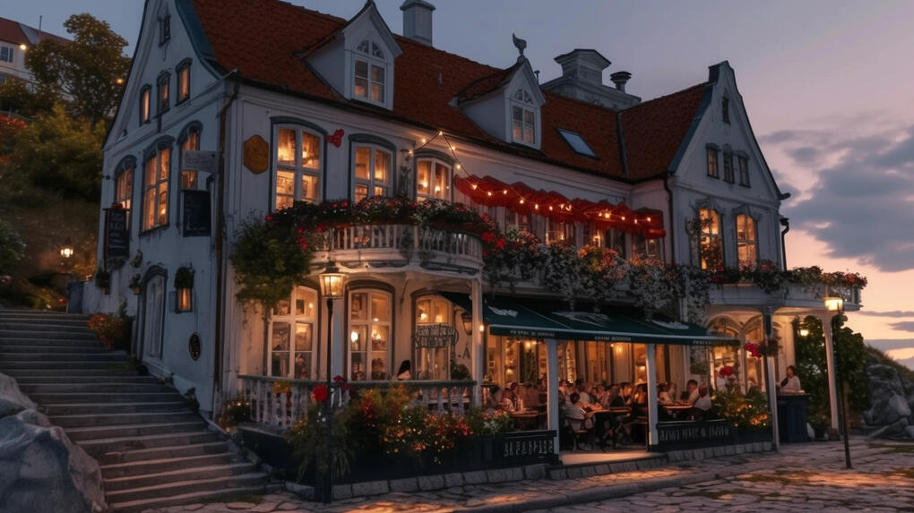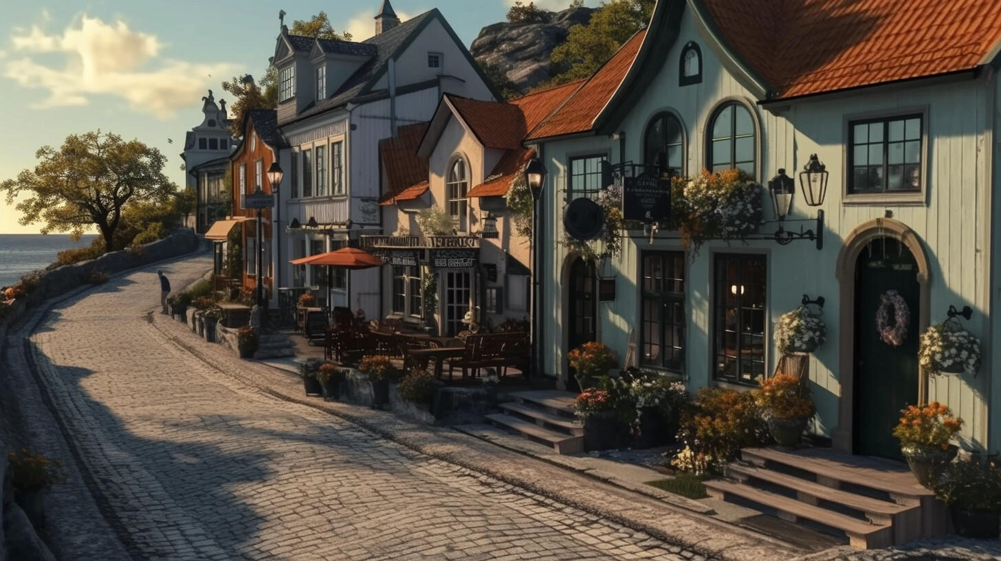 The downtown area of the island of Vikholm is picturesque, featuring charming old-style buildings. With no cars or motorcycles allowed, the island remains exceptionally calm and peaceful.