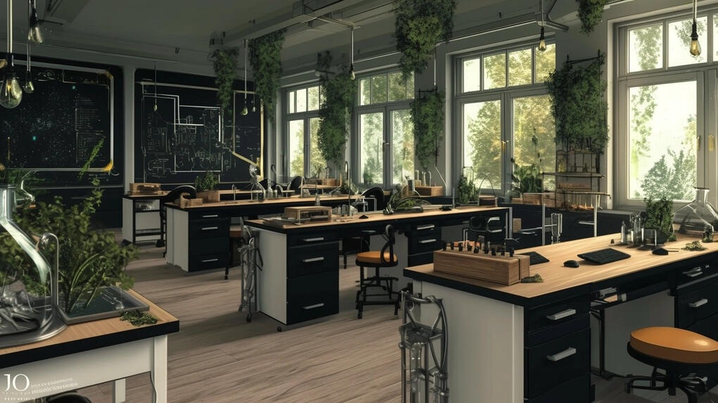 Advanced computer laboratory with adaptive workstations, ergonomic chairs.